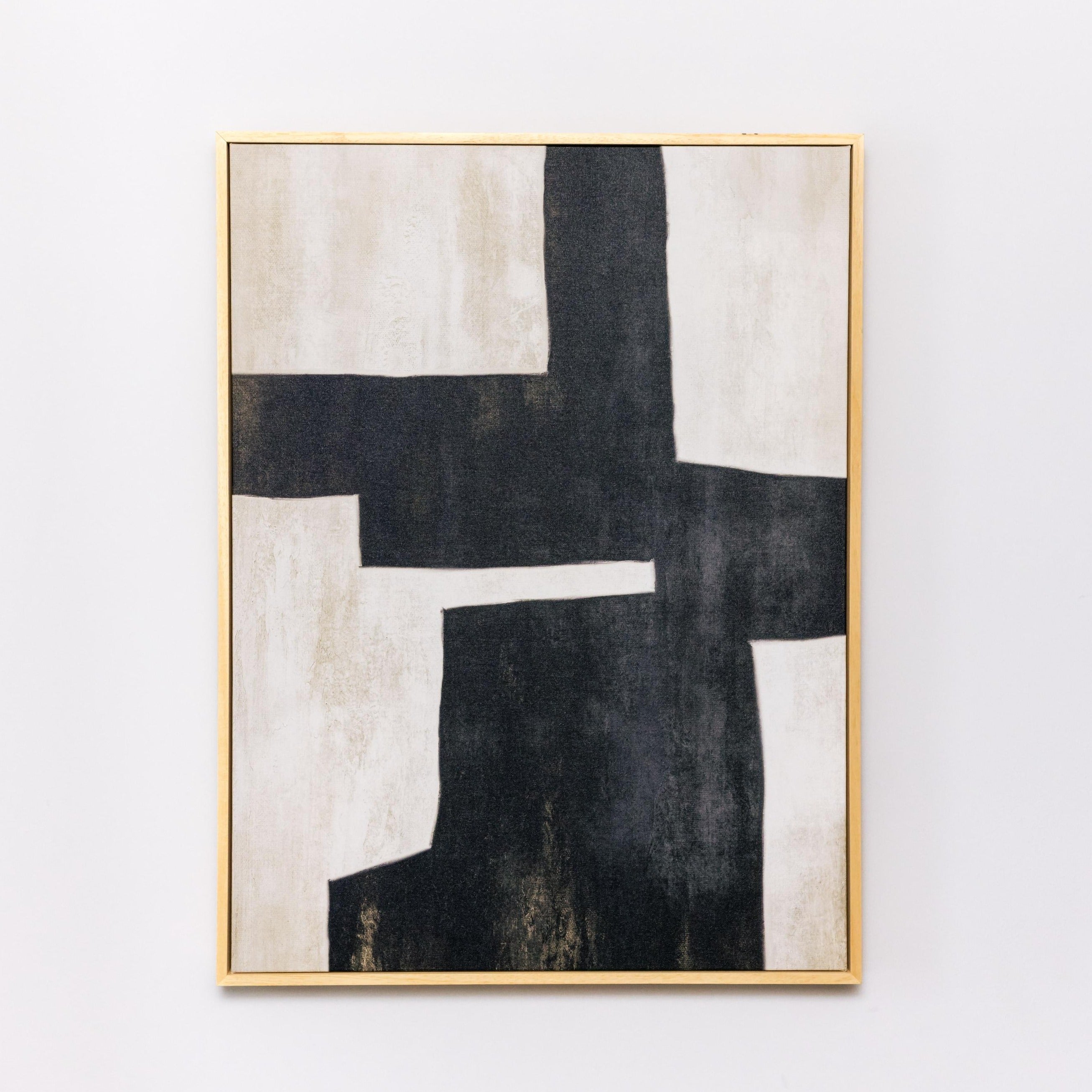 Experience the bold expressionism of our captivating piece ‘Fabio’ in colours of stone, white and grey with contrasting stark black cubic forms. This striking juxtaposition creates a mesmerising visual contrast, inviting viewers to delve into the depths of abstract emotion and intrigue.