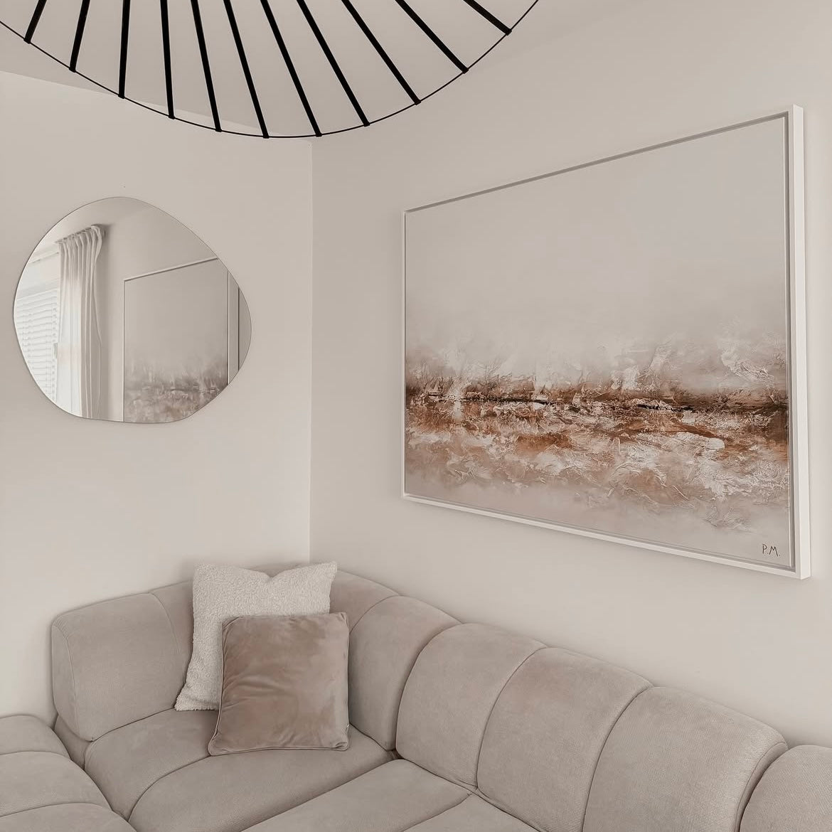 ‘Terres,’ by Paige Marie, is a stunning minimalistic piece that brings a touch of refined style to any space. Featuring earthy, natural tones, this artwork creates a sense of calm and sophistication, making it a perfect fit for modern and minimalist interiors. The simplicity of the composition allows the natural hues to shine, effortlessly enhancing your décor. Whether you're looking to elevate your living room, bedroom, or office, ‘Terres’ adds a subtle yet stylish look, making it an ideal choice for those who appreciate understated elegance.