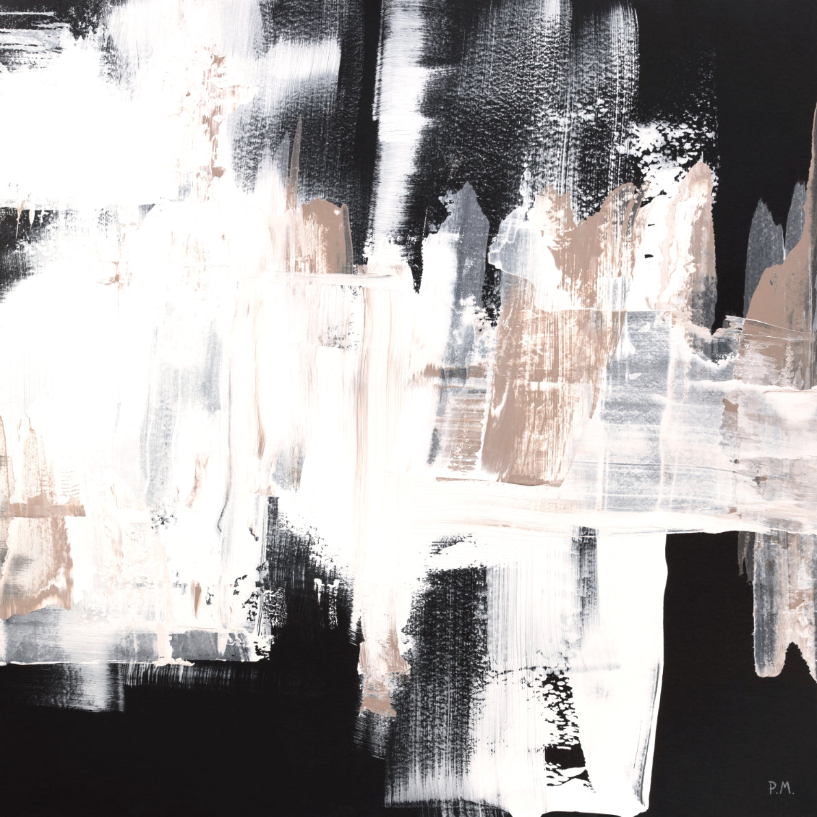 Create a minimalistic expression to your home with Paige Marie’s ‘Versa’. The bold juxtaposition of white, black and neutral makes it mark on any wall.